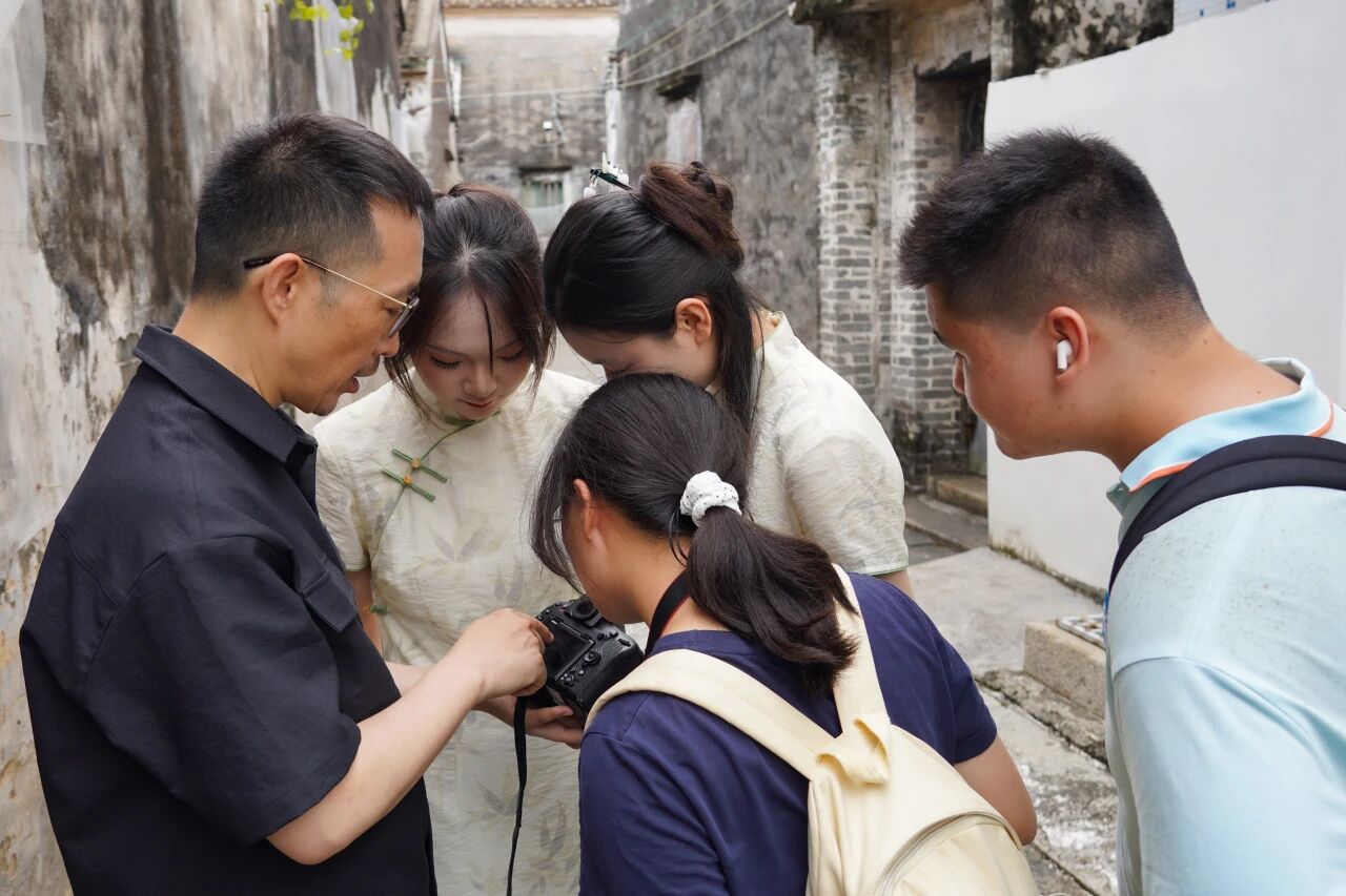 本次活动以阮玲玉名人IP活化为切入点,将实践教学与历史文化传承相结合。学生们身着民国时期服饰,漫步在左步村的古巷民居与乡野田间,沉浸式感受古村的岭南风情与人文底蕴。大家深入欧氏大宗祠、稻田风车、左步书屋等景点自由拍摄创作,在实景中上了一堂生动的摄影实践课。