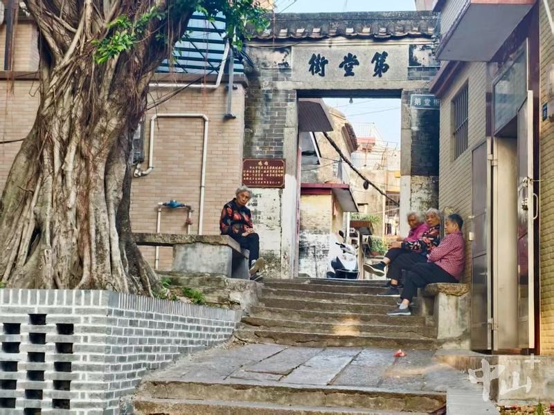 沙溪镇象角村内第堂街口,老人们坐于百年榕树下的石板凳上闲话家常。记者 林燕英 摄