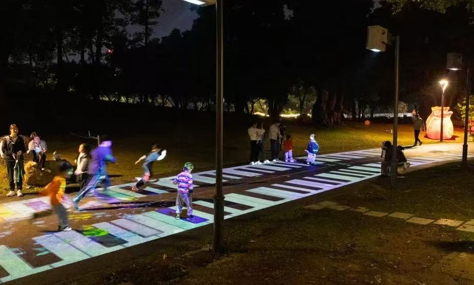 这场光影盛宴是“民生+产业+文旅”融合的生动实践。记者注意到,公园亮化工程由本土灯饰企业设计建设,融入文化元素与互动投影、激光设备,兼顾观赏与参与感。逛公园的古镇居民李静:“以前晚上少来公园,现在成了打卡地,带孩子既能看灯光又能亲近自然。”