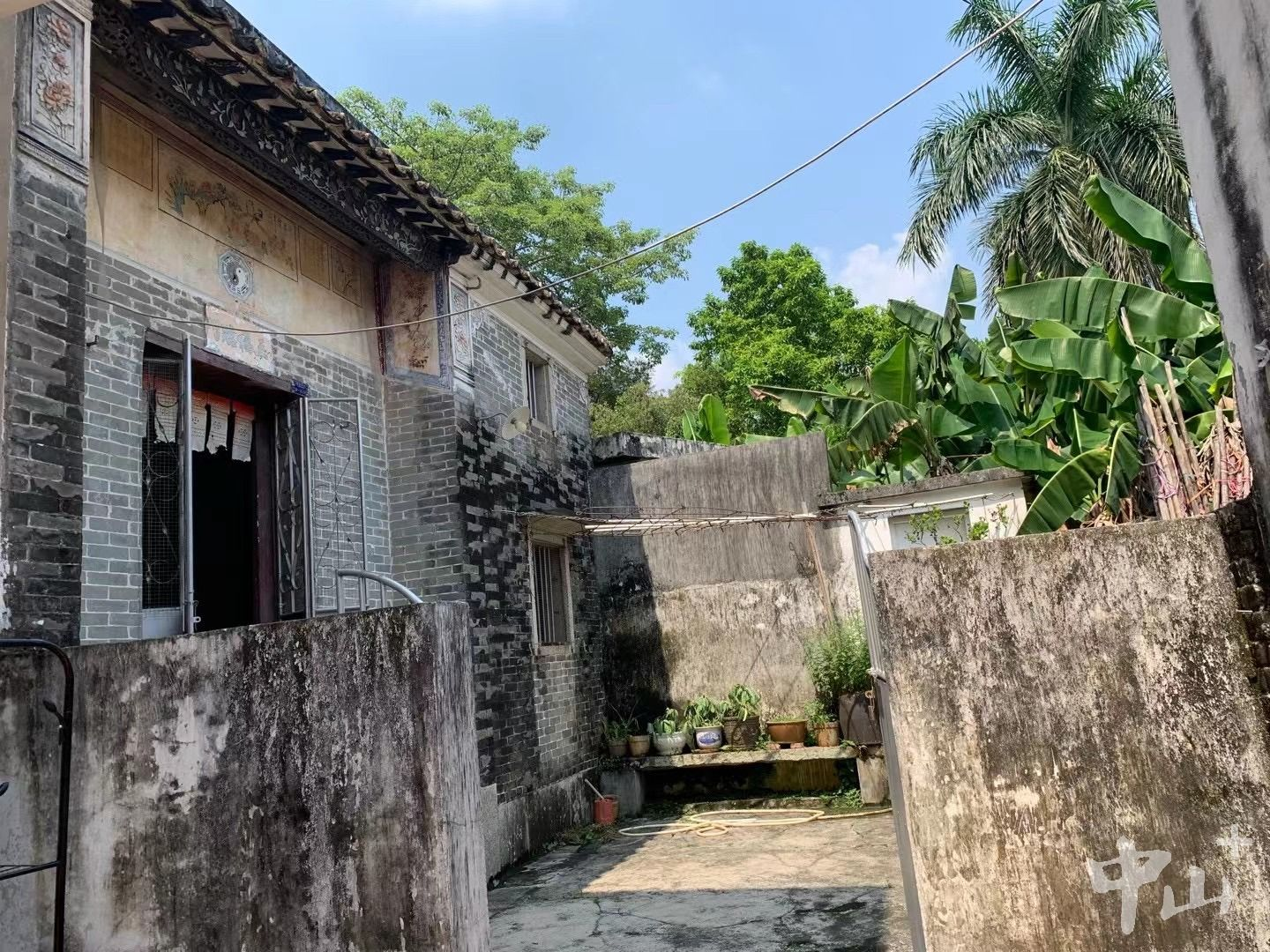 “左步村有山,有水,有田园,保留着不少清末民初的古建筑,这些都是发展乡村文旅的财富。”王莉边说边熟悉地穿行在左步村,将我们带到清代岭南建筑群——位于中山市南朗街道左步村孙家下村三巷孙锦芳祖宅片区。这一条街巷比周边较为宽敞,除了两三栋新建的自建房外,基本保留着清末民初的古建。