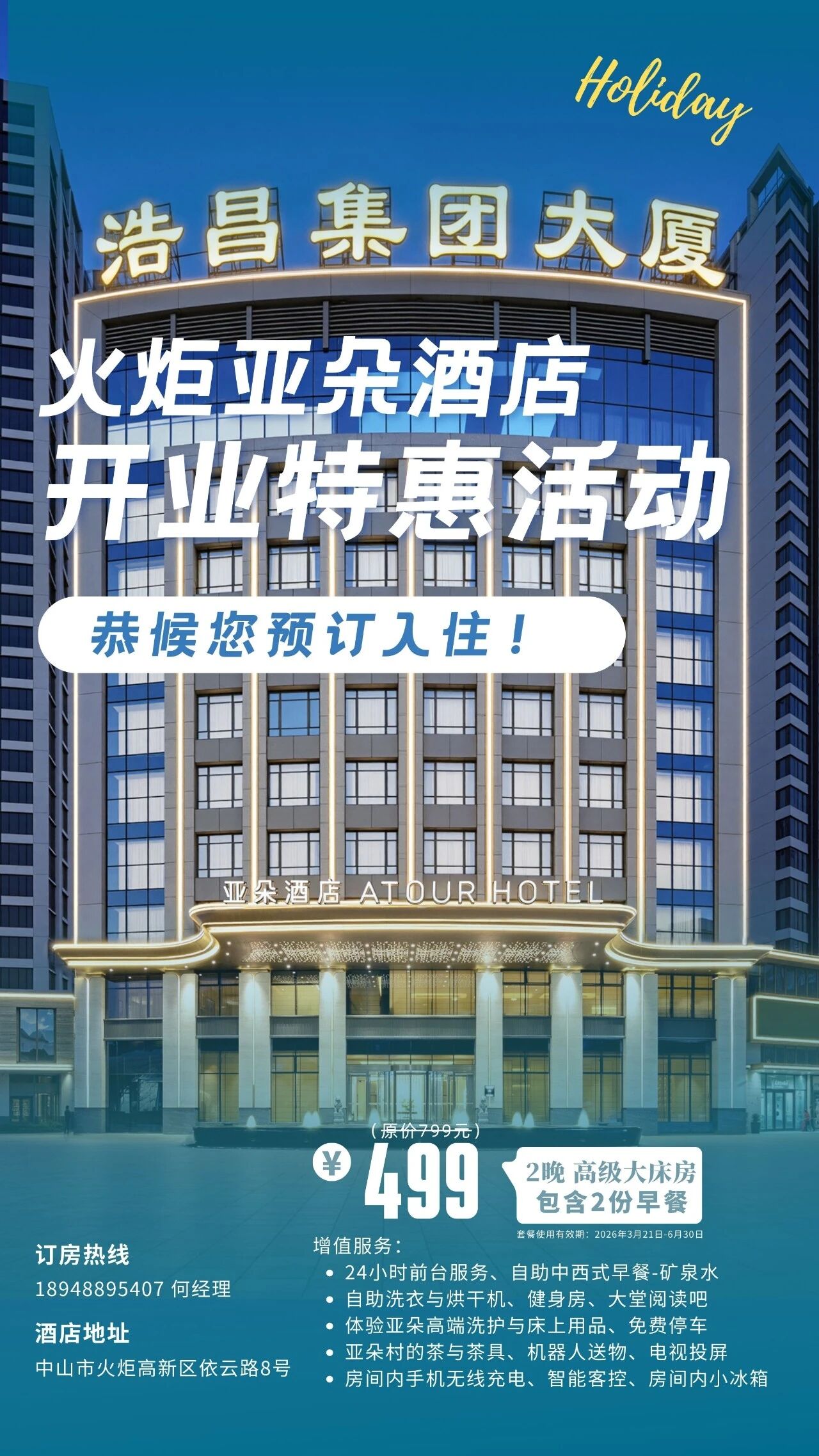 2026年3月8日,由浩昌实业集团投资运营的中山火炬高新区亚朵酒店盛大开业。