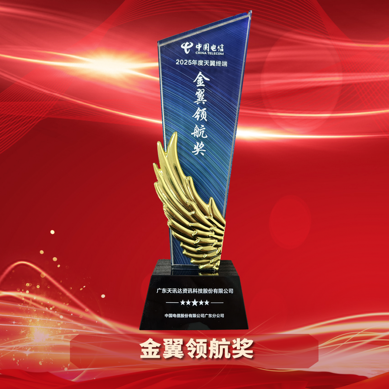 “金翼领航奖” 旨在表彰在天翼终端提货规模及多品牌合作中表现最为突出的头部渠道伙伴。天讯达能够在全省众多渠道商中脱颖而出,获此殊荣,充分证明了我们在终端采购规模、多品牌操盘能力以及渠道覆盖深度上的领先优势。