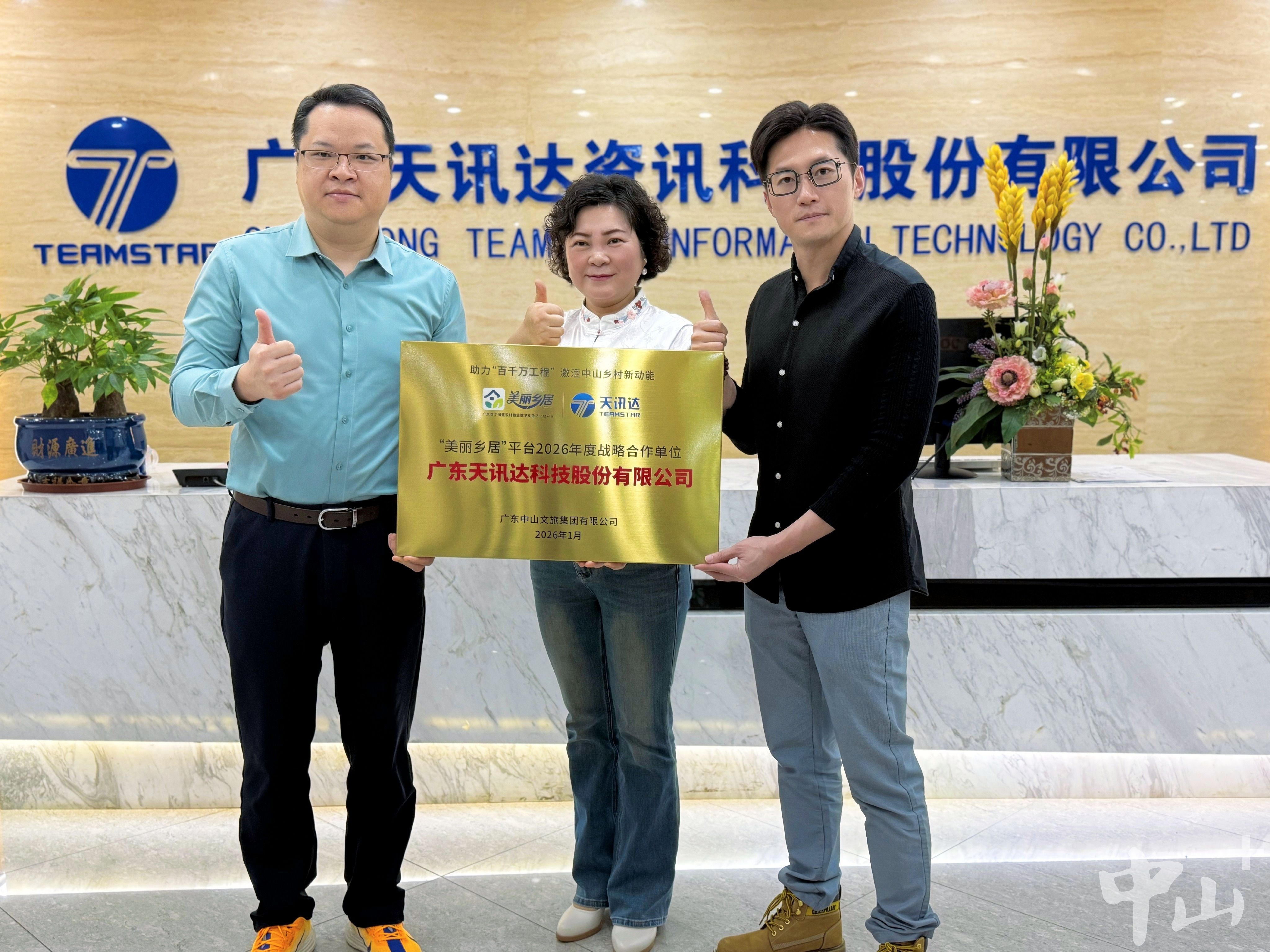 近日,广东天讯达资讯科技股份有限公司(以下简称“天讯达科技”)与广东中山文化旅游集团正式达成年度战略合作协议,天讯达科技正式成为中山文旅集团“美丽乡居”平台2026年度战略合作单位。据悉,双方将立足各自核心优势,深度融合技术力量与文旅资源,共同推进中山乡村文旅数字化转型,助力“百千万工程”落地见效,为建设宜居宜业和美乡村注入新动能。