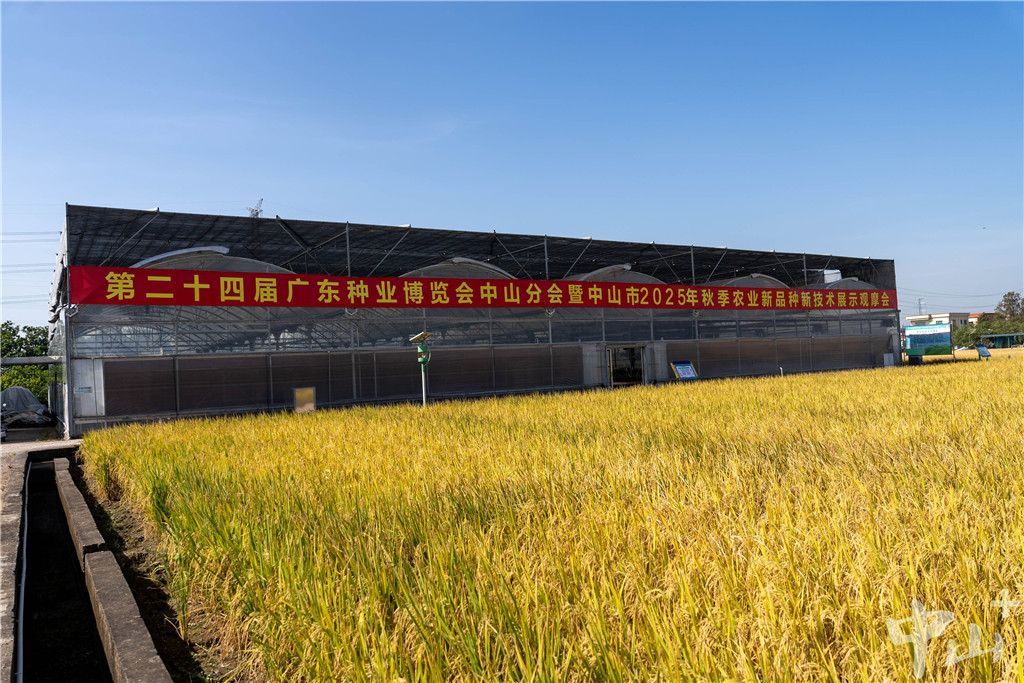 第二十四届广东种业博览会中山分会暨中山市2025年秋季农业新品种新技术展示观摩会现场,黄灿灿的稻田。记者 黄艺杰 摄