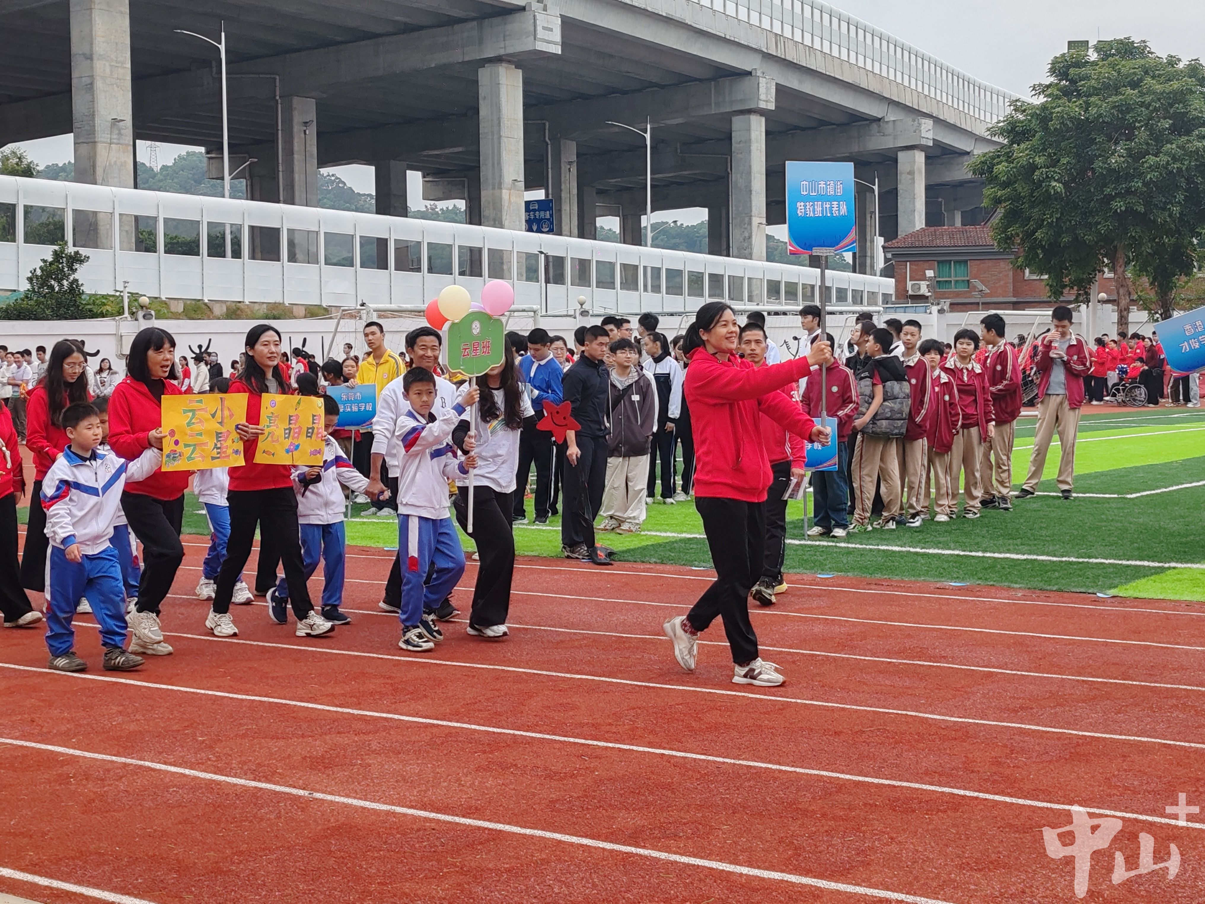 阳春市启智学校第三年来到中山参加比赛。校长李容表示,该校位于较偏远山区,借运动会契机来珠三角交流,不仅可以让孩子们动起来,还拓宽了视野,“我们同为特教学校,从中山特校学到很多教育与管理方法,比如面向培智学生的分层教学法。”中山市三鑫凯茵学校作为普校代表团之一,学生手捧鲜花入场与特校同伴玩到一起。“我们的鲜花象征美好祝福和喝彩,给有特殊需要的同学传递友谊。”三鑫凯茵学校五年级学生饶思思希望通过一起运动,让特殊需要的孩子们感受到中山是一座友善互助的城市。