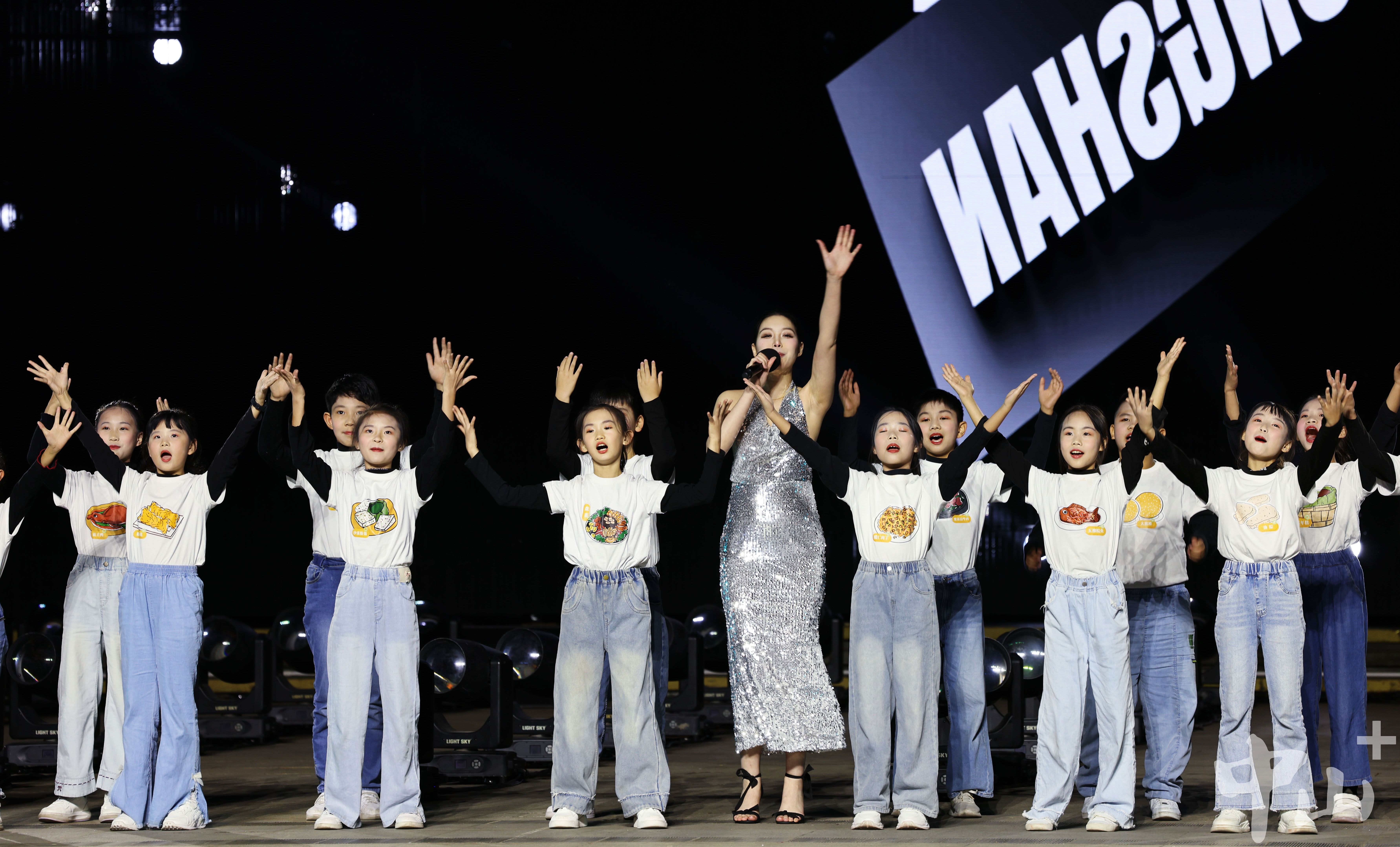 “现代秀”环节以流行歌手助唱点燃现场氛围。巨型大屏幕上,“时尚中山”展示服装裁剪万千技艺,另一侧,20家本土服装企业的中山休闲服、牛仔服饰、精致婚纱礼服等特色品类依次亮相,尽展中山时尚产业集群的雄厚实力与潮流底气,让观众近距离感受现代时尚的活力风采。