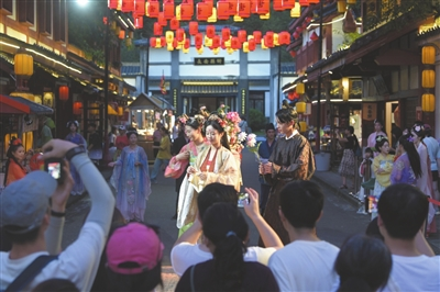 8月10日,中山影视城举办“长安不夜城活动”,百名博主齐聚中山影视城,沉浸式体验暑期“上新”魅力。 记者 罗杨鸿 摄
