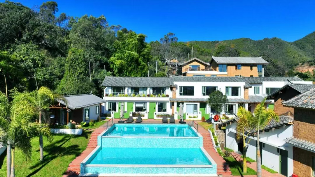 在永仁县宜就镇龙潭村,原本因易地搬迁而闲置的院落,经过精心设计改造,转型为集泳池、共享厨房、花园餐厅、咖啡屋等功能于一体的乡村民宿集群。