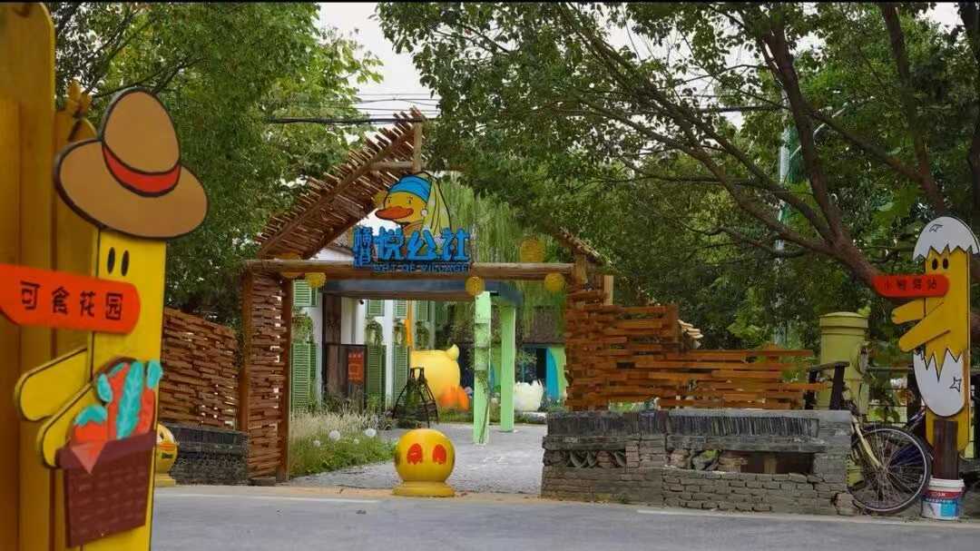 2015年引进专业运营团队,横港村决心以“修旧如旧”的保护理念建设“艺术村”,破旧鸭棚改造成的小鸭驿站,成了游客接待中心;沿路竖着的竹竿,到了晚上变成路灯;26幢近5000平方闲置农房皆被改造……