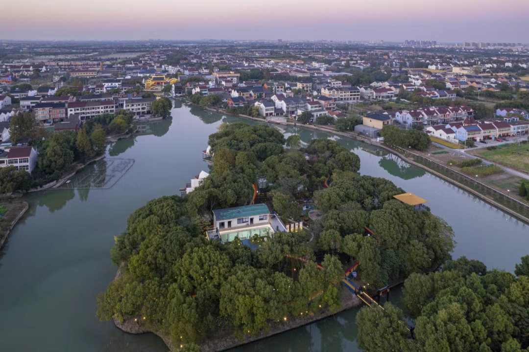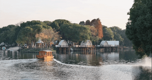 长宁老街南面正对的水域上,一处名为“葫芦岛”的亲子休闲场所,有空中乐园、萌宠乐园、水陆两区露营地、瞭望塔等,是村民的“健身房”、家庭的“遛娃地”,更是不少人的“小众旅游地”。