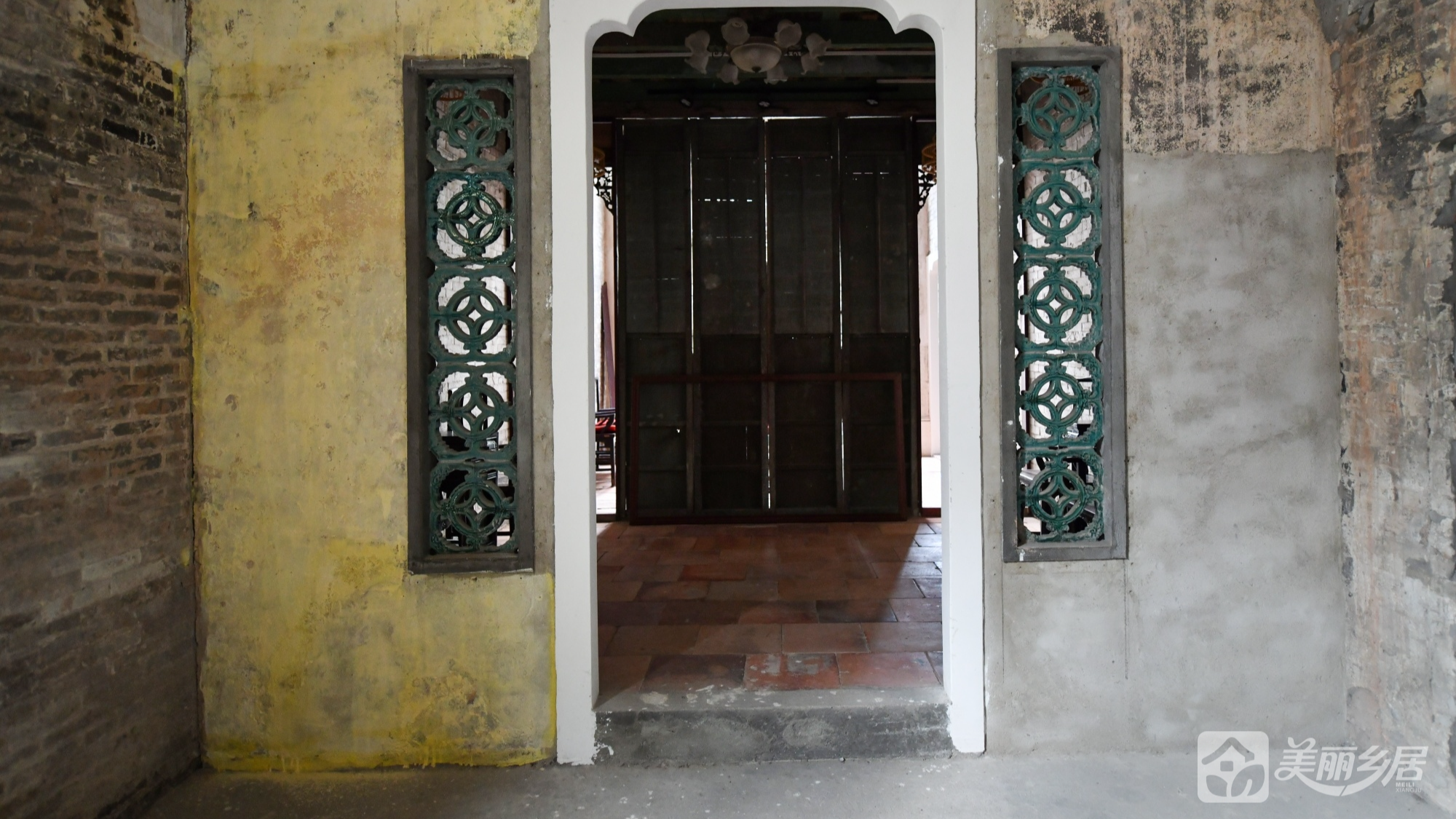 4. 闲置区:过渡门洞的岭南纹样装饰板强化历史层叠感。