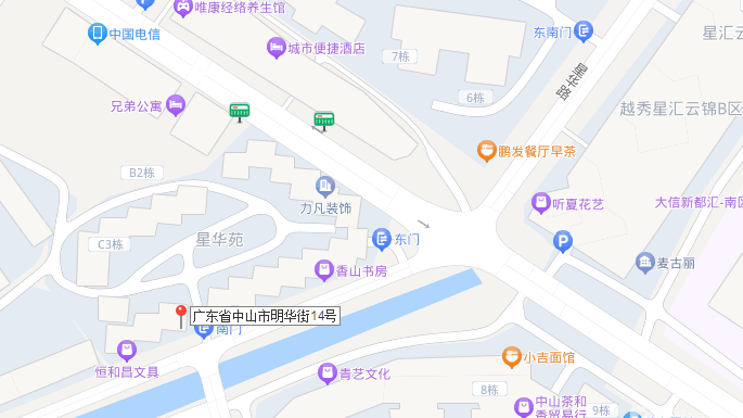 l 具体地址:广东省中山市南区星华路侧星华苑12号铺之二(对应电子地图标注“广东省中山市明华街14号”附近)。