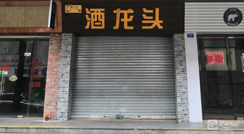 中山市火炬开发区张家边东镇大街12号商铺,卷闸门闭合,属临街商铺建筑。