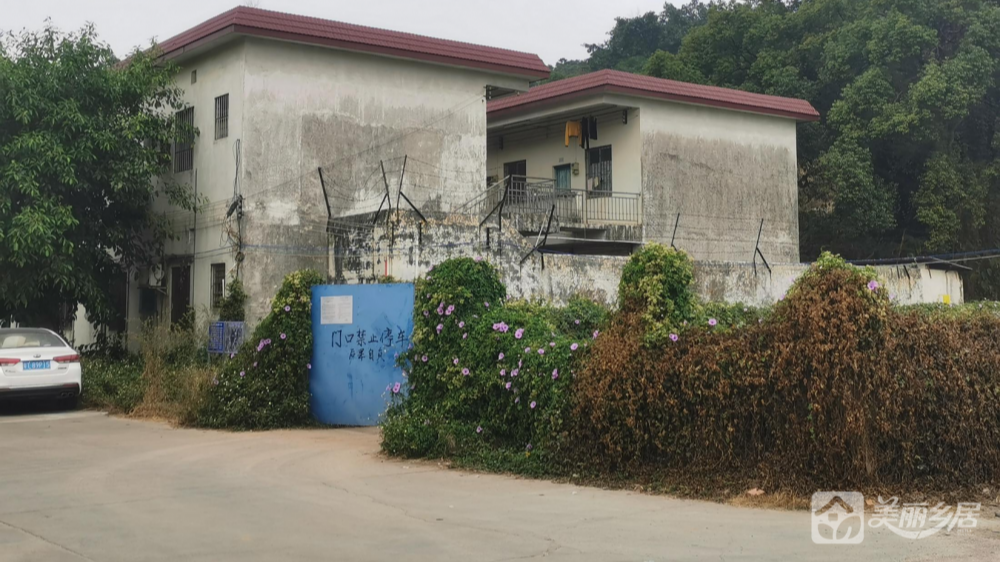 中山市火炬开发区窈窕白岗一街8号之一(企巷山脚出租屋),灰白外墙配红瓦屋顶,前方蓝围墙写“门口禁止停车”,二层设有阳台,环境自然感浓。
