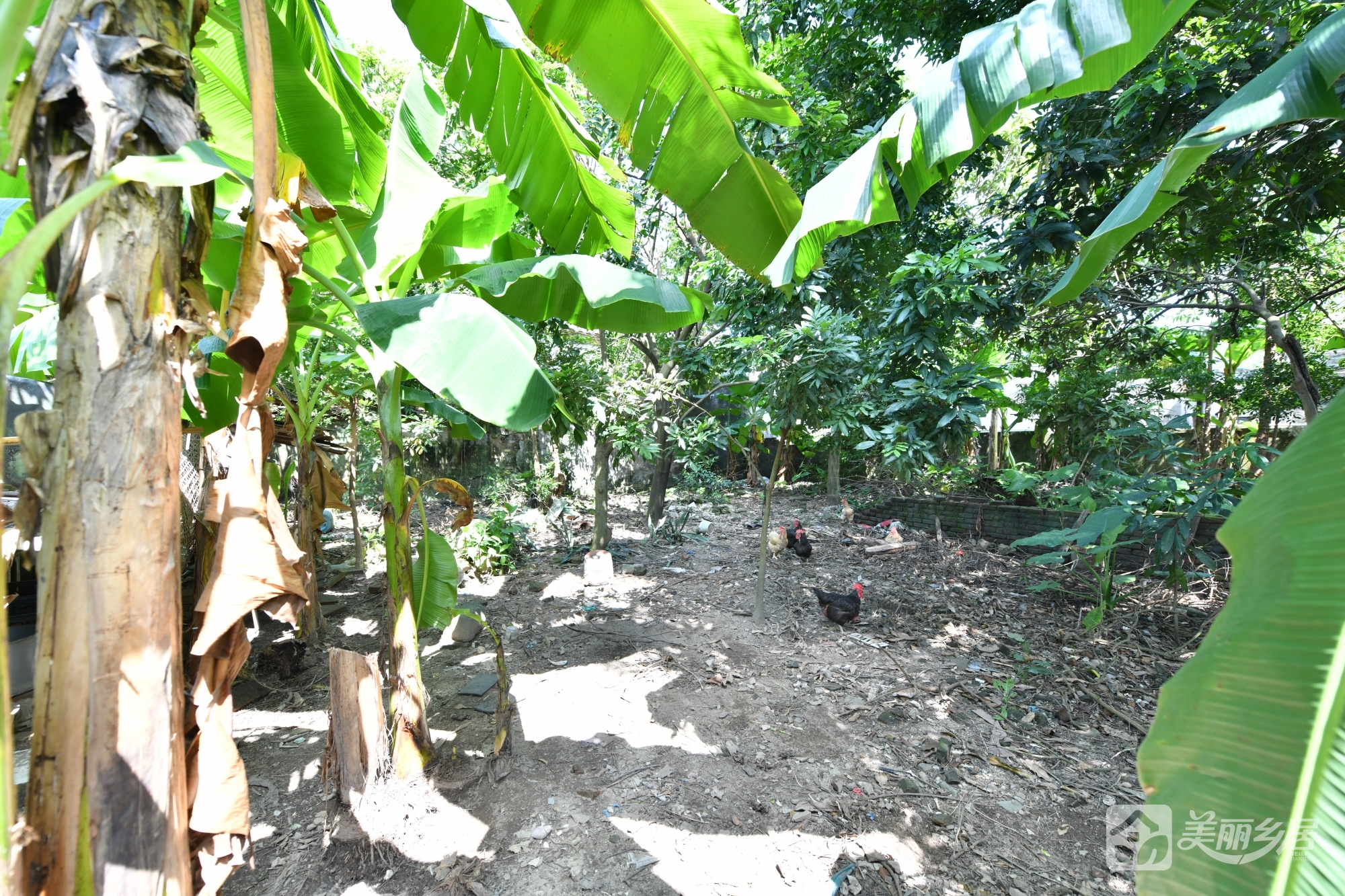 - 左侧种植多株高大芭蕉树(树干粗壮,叶片宽大翠绿),不仅提供天然遮阴,落叶腐熟后还可形成有机肥料,改善土壤肥力;