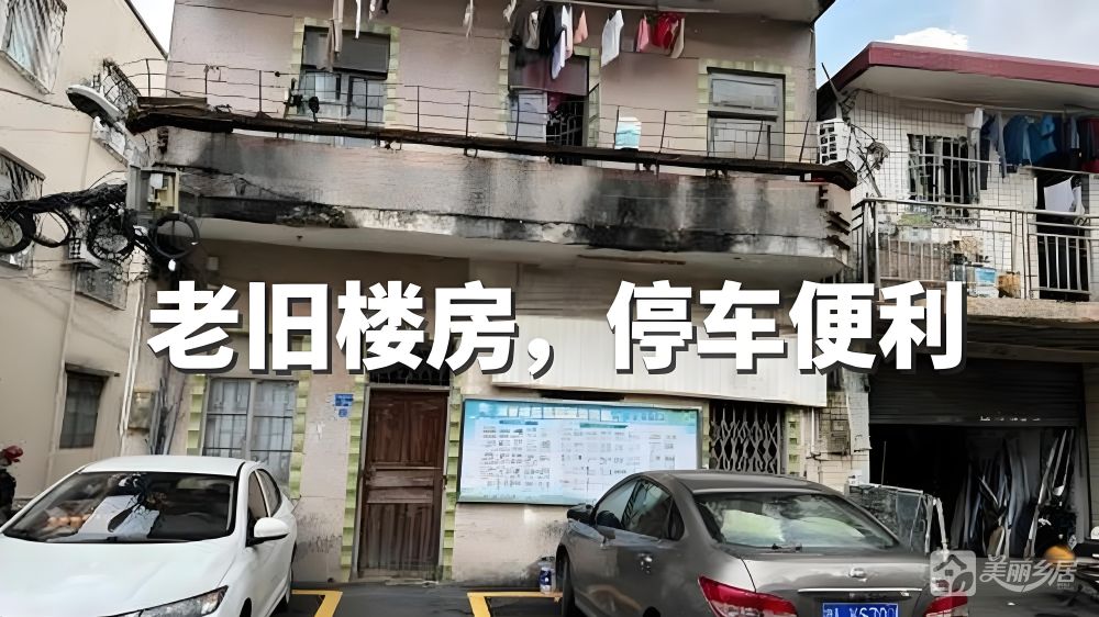 这栋两层居民楼外观朴实,充满生活气息。二楼阳台晾挂着多样衣物,展现了日常居住的温暖氛围。房屋一楼入口处设有蓝底白字的公告板,提供社区信息。周边环境安静,背景映着多云天空,整体氛围略带沧桑感,适合追求简单生活、预算有限的租客或购房者。