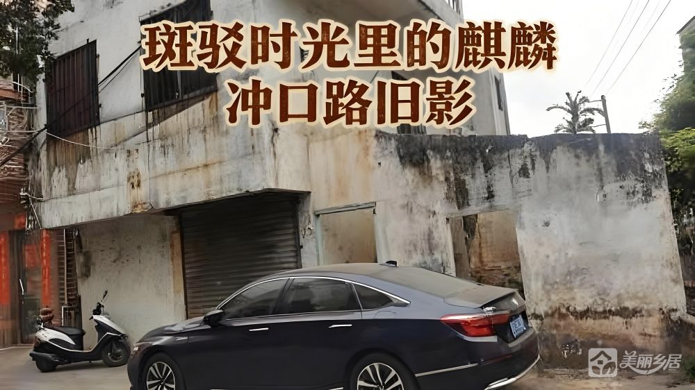 麒麟冲口路 11 号为多层旧房屋,外墙斑驳破旧,有锈迹与风化剥落痕迹,底层设卷帘门,整体外观老旧,周边停着车辆,显露出岁月侵蚀的模样。