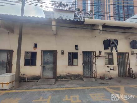 房源由多层居民楼和临街平房组成,外墙斑驳,门窗略显陈旧,衣物晾晒和交错电线透露出浓厚的日常质感。其显著特点是背景中现代化高楼与前景老旧住宅形成的鲜明对比,暗示其位于正经历新老交替的城市区域。