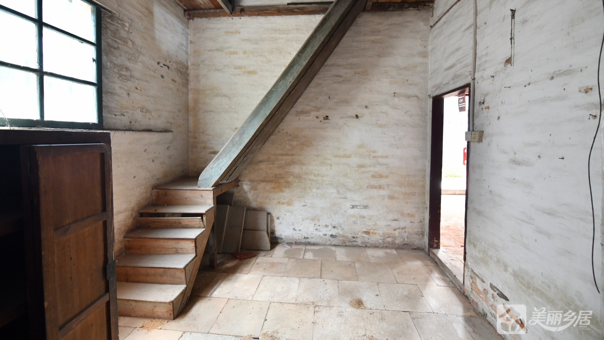 多房间闲置,空间格局完整。保留木质结构亮点,如斜靠的旧楼梯、深沉木色横梁、红褐色石板/瓷砖地面。
