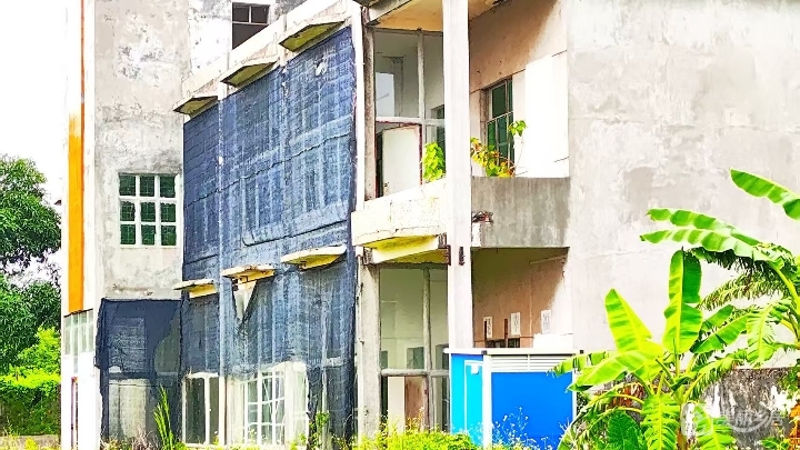这组房源由多幢旧建筑组成,主体为灰色调多层楼房与白色平房,部分墙面保留橙色点缀,斑驳痕迹与破损窗户透出岁月质感。房屋周边草木自然生长,芭蕉等绿植环绕,形成静谧荒芜的院落空间,兼具私密性与生态氛围。现有结构开阔,多层楼房带阳台区域,平房前后空地充足,整体虽需修缮,但具备清晰的改造基础。