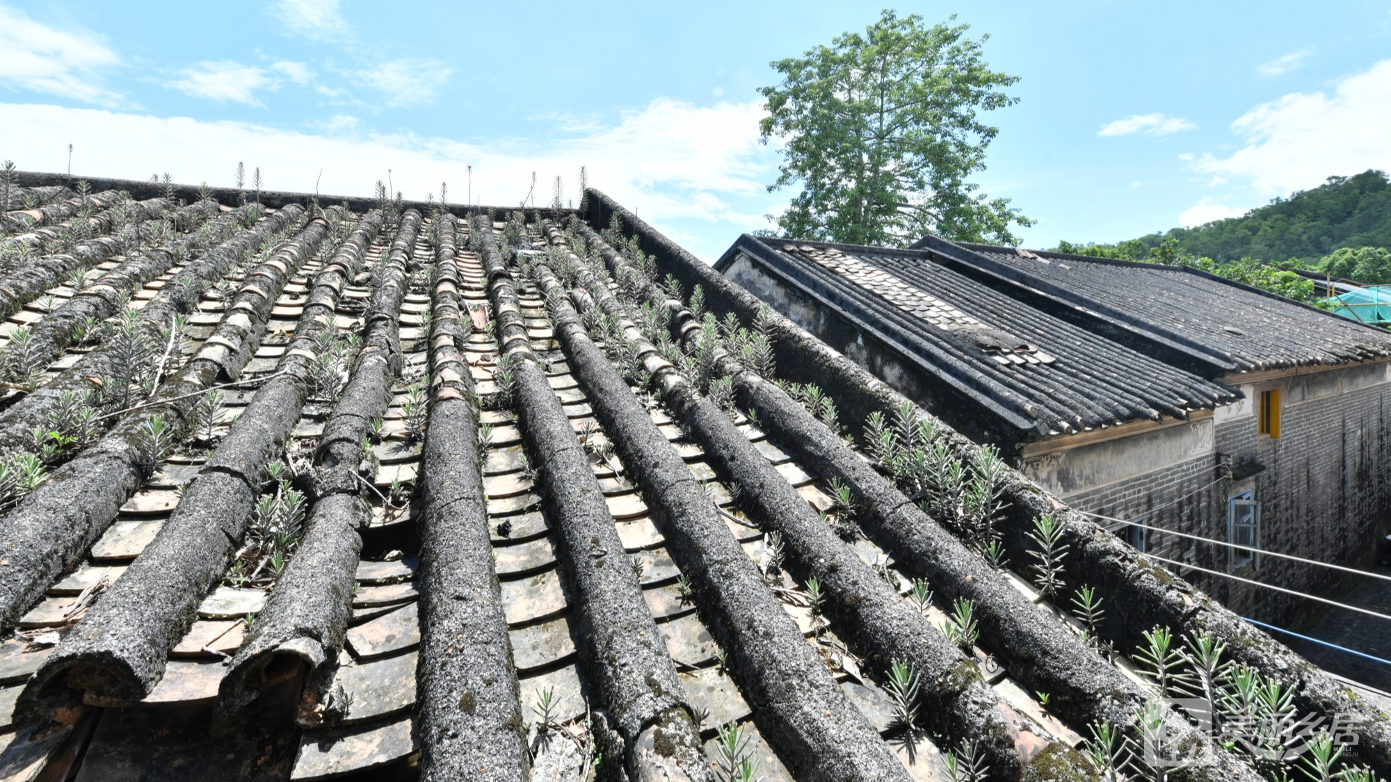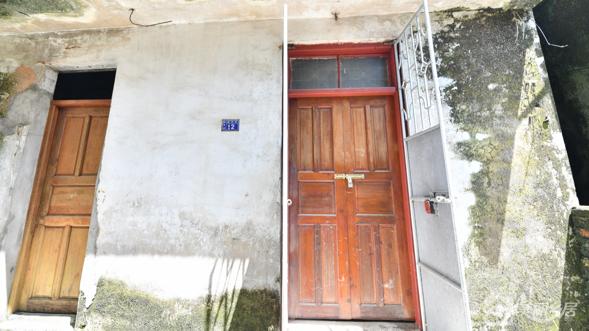 这座农房为两层结构,外墙多为灰白、红砖及灰色砖块砌成,尽显古朴宁静。屋顶是灰黑色瓦片。