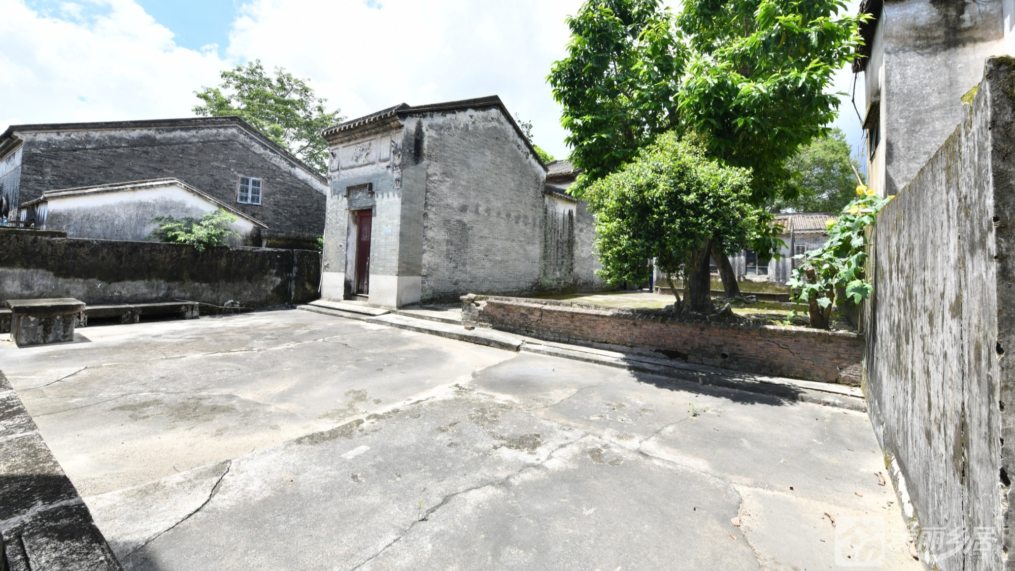 房屋整体为灰砖砌筑的传统农房建筑群,融合岭南乡村建筑的典型特征,其核心结构保存完整,细节处仍可窥见昔日的烟火气。